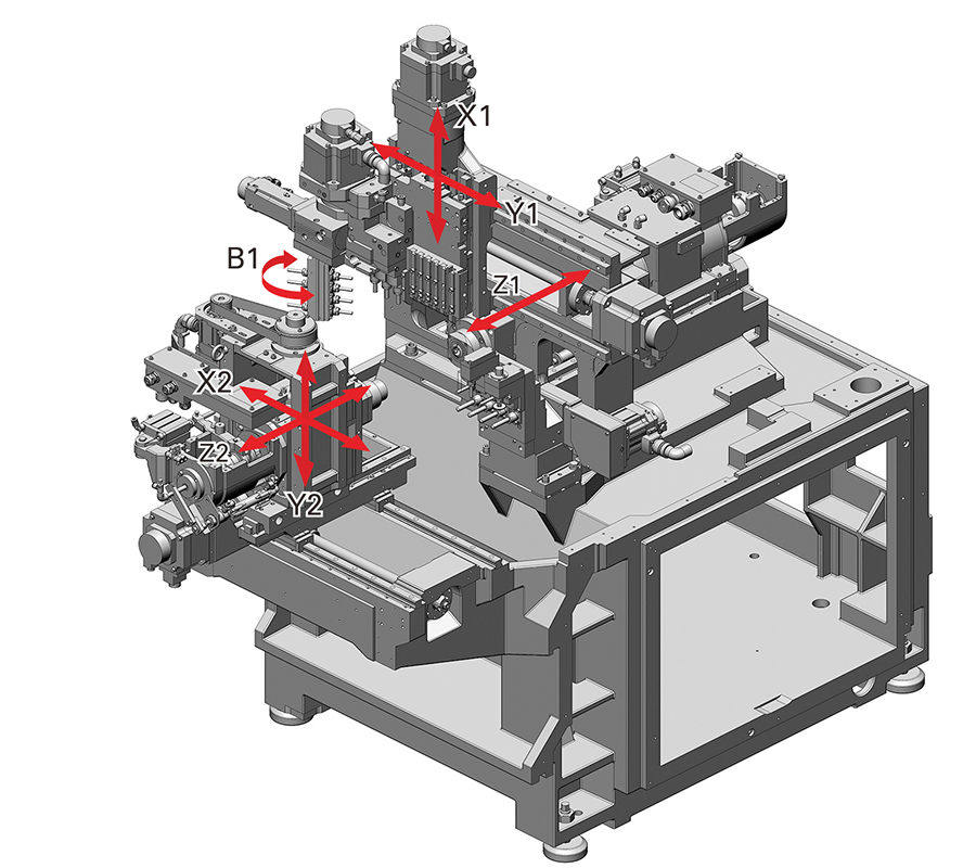 2、B軸刀具將正面主軸的加工范圍擴(kuò)大到110°,從而實(shí)現(xiàn)更復(fù)雜、更高精度的加工